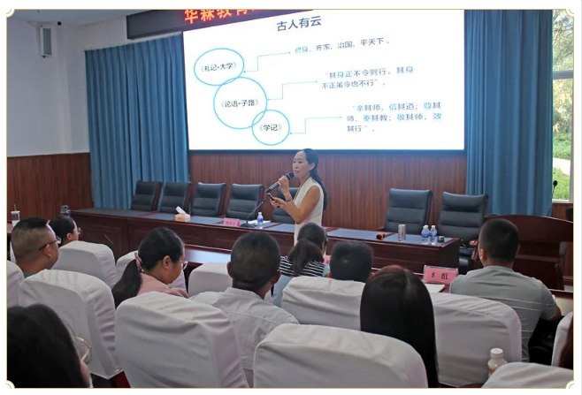 她采取視頻播放、列舉經典案例、互動送禮物、圖片展示、結合幾所學校所面對的學生的現狀和自己的工作經驗、與教師交流互動、歸納總結等方式,從即將被自己廢掉的人、練就“四好”塑造最棒的自己、當下決定未來塑造最棒的自己3個方面進行分享。