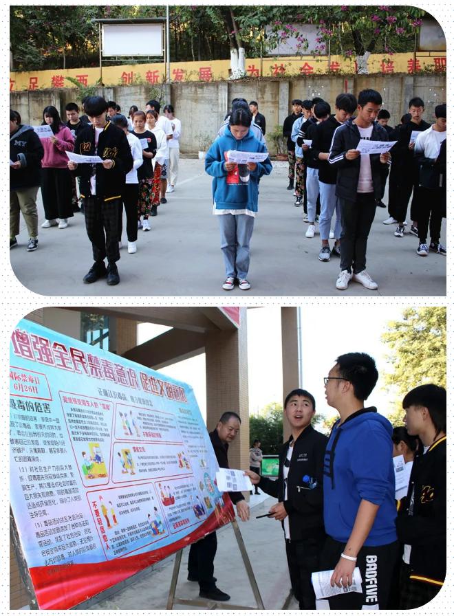 為進一步增強廣大師生拒毒、防毒意識,普及禁毒知識,確保校園無毒品,在四川省第四屆大學生禁毒文化節來臨之際, 12月9日,攀西職院后勤保衛處組織師生開展了“青春無悔 精彩綻放”為主題的禁毒宣傳教育活動。