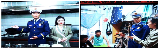 其次在消防民警和主持人的帶領下,走進大學校園,通過消防安全知識現場講解,查找校園消防隱患、模擬引發火災的違規場景和事件、組織消防應急滅火和疏散演練、師生訪談等方式,現場科普了教室、食堂、實驗室、宿舍等不同場所的消防安全知識。