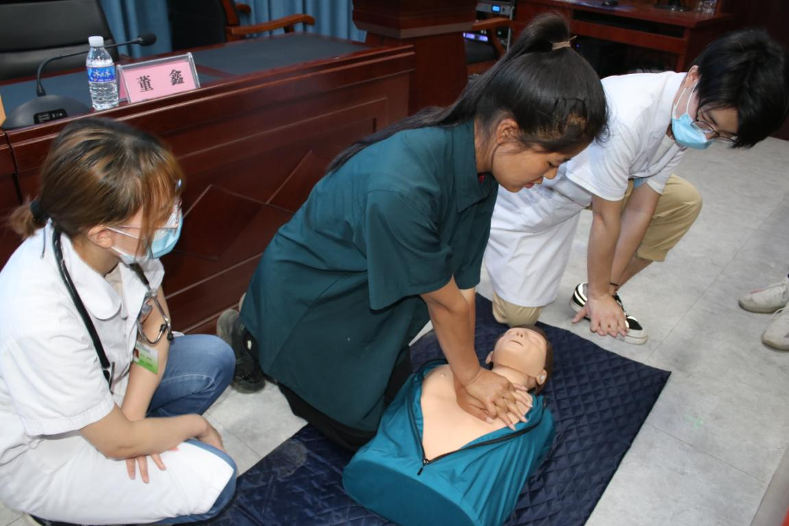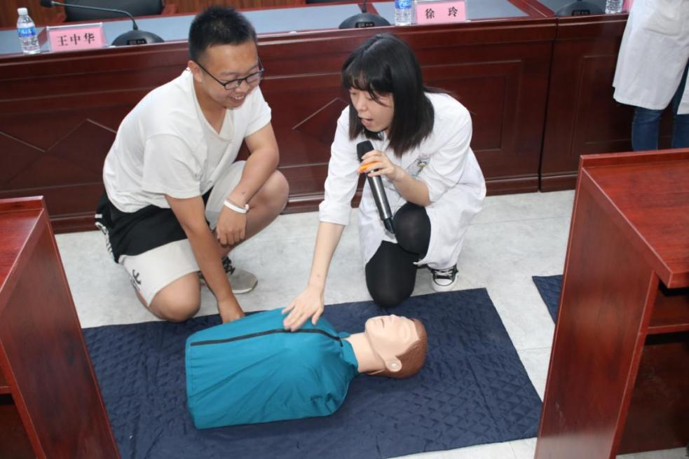 還為學(xué)生和老師進(jìn)行了手把手教學(xué),讓大家實(shí)際操作更深入的了解了心肺復(fù)蘇和人工呼吸。