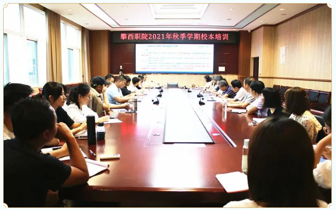 新學期即將開學,為提升教師綜合素養,推動學院高質量發展, 8月26日上午,攀西職院在二實訓樓四樓會議室舉辦2021年秋季學期開學校本培訓,學院院長劉國欽、執行院長趙海林、副院長李玉德等領導及全體教師參加培訓。學院組織人事處處長曾祥明主持培訓。