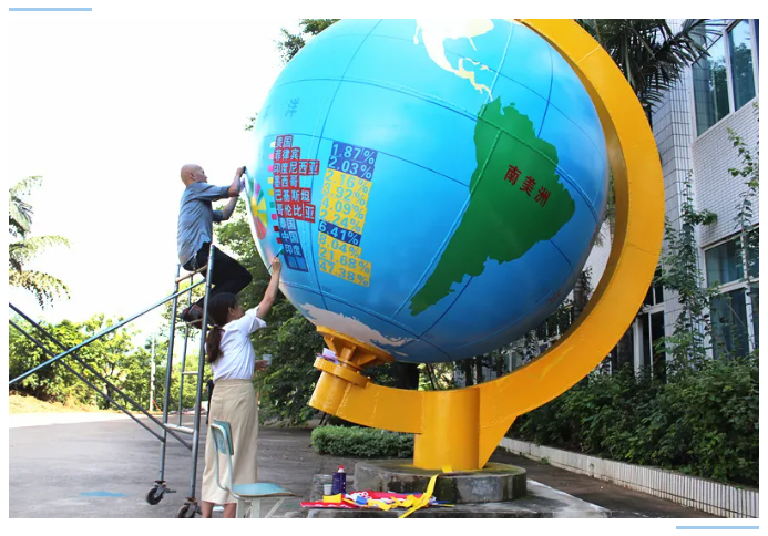 美麗、壯觀的地球儀單個重量達8噸多,從開始制作到完工動用了不少大型機械,是繼學院大門后校園內出現的又一新地標,也為學院再次增加又一網紅打卡點。
