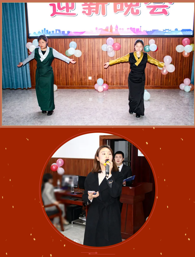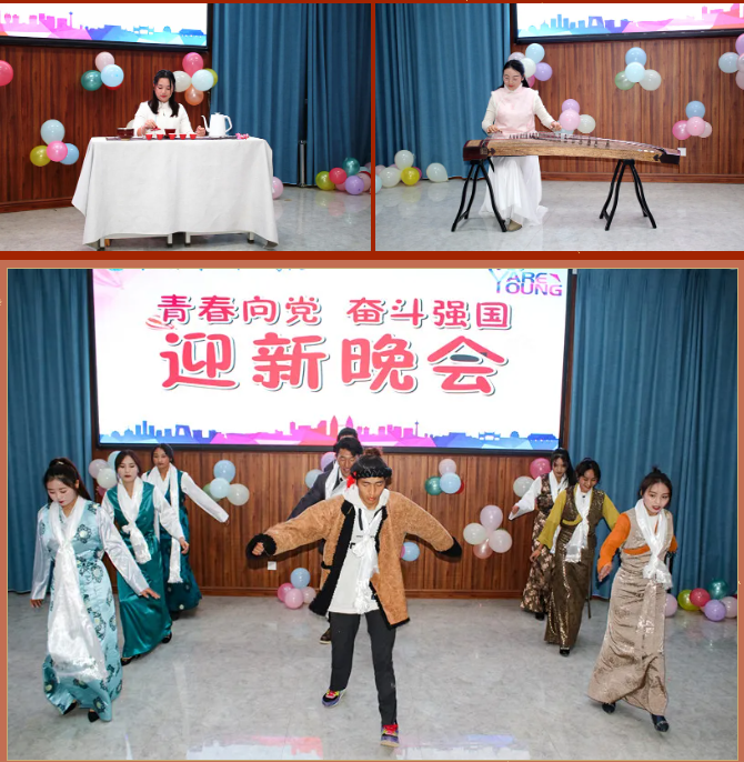 清風拂柳,溫陽普照,激情澎湃,盛世歡騰。舞蹈《毛主席語錄》為晚會拉開序幕,緊接著朗誦《覺醒年代》讓大家感受一百年前中國的先進分子和一群熱血青年演繹出的一段追求真理、燃燒理想的澎湃歲月。在喜迎中國共產黨成立100周年之際,大合唱《沒有共產黨就沒有新中國》表達出師生強烈的愛黨愛國之情。藏族歌曲《邦錦梅朵》為大家送來了新春祝福,傳遞著對美好生活不懈追求。《串燒舞蹈》用絢麗多彩的舞姿舞動屬于大學生們的青春旋律,點燃大家的激情,放飛夢想。《三星太極》展示了中華武術悠久的歷史,源遠流長的文化底蘊。古箏《高山流水》與茶藝完美的結合,在品茶中享受優美的旋律,感受中華文化的博大精深,讓人感到心境開闊,輕松愉悅。歌曲《因為愛情》讓大家再次感受到真摯的友誼來之不易,要珍惜美好的情感,不留遺憾。朗誦《跨越百年的承諾》再現南湖紅船的勝利啟航及在中國共產黨的領導下,一代又一代的中華兒女為國家的富強努力拼搏,表達出對祖國的濃濃的深情厚意。彝族歌曲《祖先》讓大家一起追尋祖先的智慧,聆聽先輩的教誨。舞蹈《最美祝福》展現青春跳動的旋律,點亮青春的色彩。在節目最后,由劉華老師為大家帶來的激情演唱,師生熱情高漲,掌聲、叫好聲讓晚會現場變成沸騰的海洋,晚會在高潮中完美落幕。