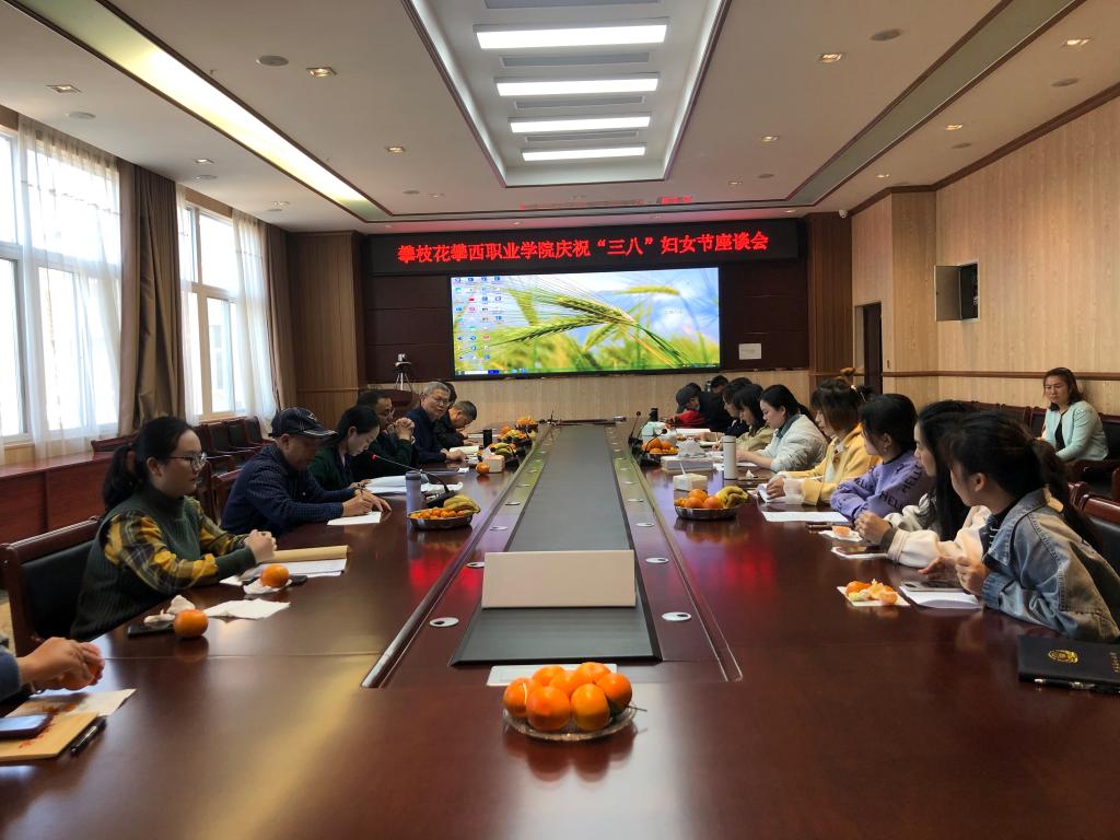 2022年3月8日上午,攀枝花攀西職業學院在二實訓樓四樓會議室舉行慶祝“三八”婦女節座談會。學院黨支部書記、省督導專員萬輝君,執行院長趙海林,副院長李玉德、周再玉出席座談會,全校女教職工以及各處室、系部負責人參加座談會。座談會由學院工會負責人周榮輝主持。