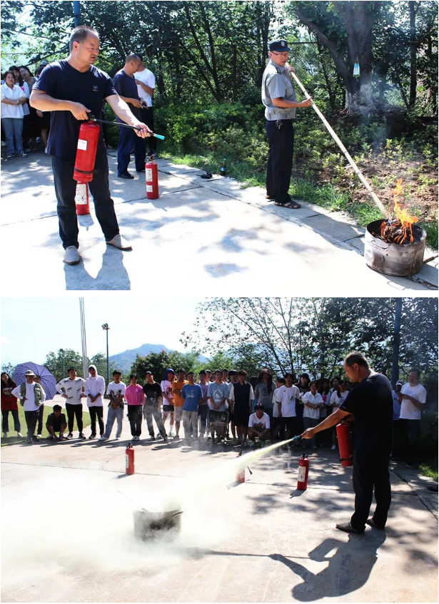 在滅火演練中,大家不懼烈日的暴曬,圍在操場的一角,倪繼成副處長再次講解和示范了干粉滅火器的使用方法。學生代表輪流上陣,在工作人員的指導下,利用手中的滅火器,一次次撲滅熊熊燃燒的大火。整個演練過程師生們毫不慌亂,按提前制定好的演練方案,工作人員各司其職、積極主動,演練圓滿完成。