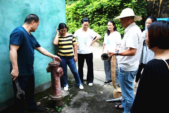 在學生宿舍,倪繼成對宿舍管理人員進行培訓,他強調了宿舍管理員日常工作職責、宿舍管理制度,要求大家嚴守崗位,履職盡責。他重點對宿舍消防安全進行講解,如宿舍管理人員日常生活中如何預防火災,火災發生后如何正確撥打報警電話及指導學生逃生自救等。對宿舍典型火災案例進行分析,指出宿舍火災的巨大危害性。他講解并演示了過濾式消防自救呼吸器、干粉滅火器、消防水帶的操作使用步驟,并指導大家親自操作。