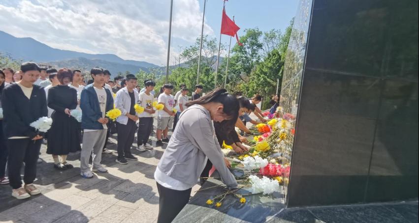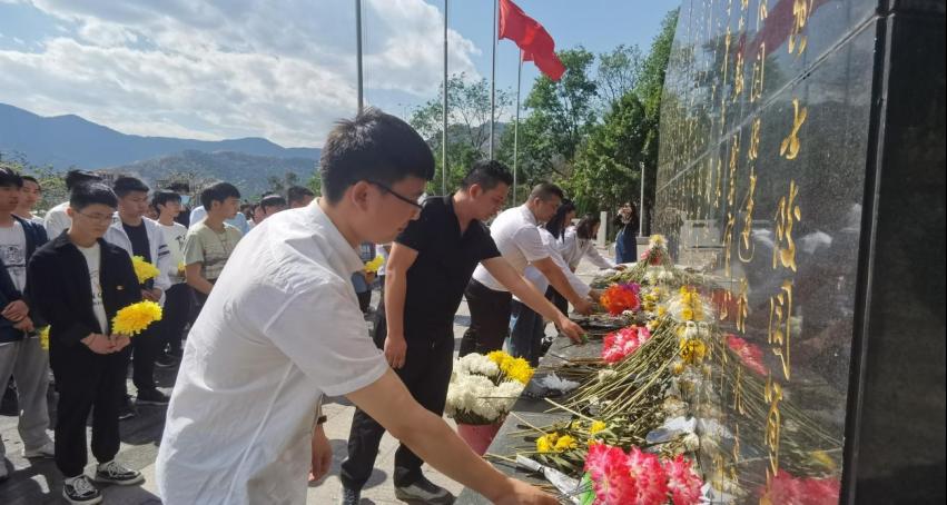 隨后,全體師生依次向烈士紀念碑敬獻鮮花,并在工作人員的帶領下,走進烈士墓園。