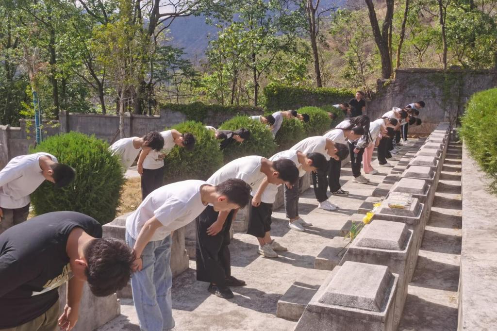 這里長眠著二百五十多位最可敬的人,有為建成昆鐵路而光榮犧牲鐵道兵戰士,有為保衛新生的紅色政權為平叛清匪以身報國的民兵戰士以及其他無名烈士。他們最小的年僅16歲,他們皆為熱血青年和當代軍人,為了人民的解放事業,為祖國的經濟建設為人民的幸福生活而獻出生命。聆聽著烈士們的英雄事跡,同學們向烈士三鞠躬,向革命先烈表達無限哀思和敬仰之情。