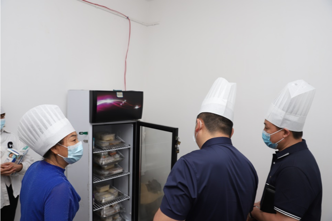 專家組抵達學校后,率先到食堂進行現場檢查。專家組按照食堂運轉流程依次逐一查看食堂各個環節,一邊查看一邊詢問還一邊提出建議。