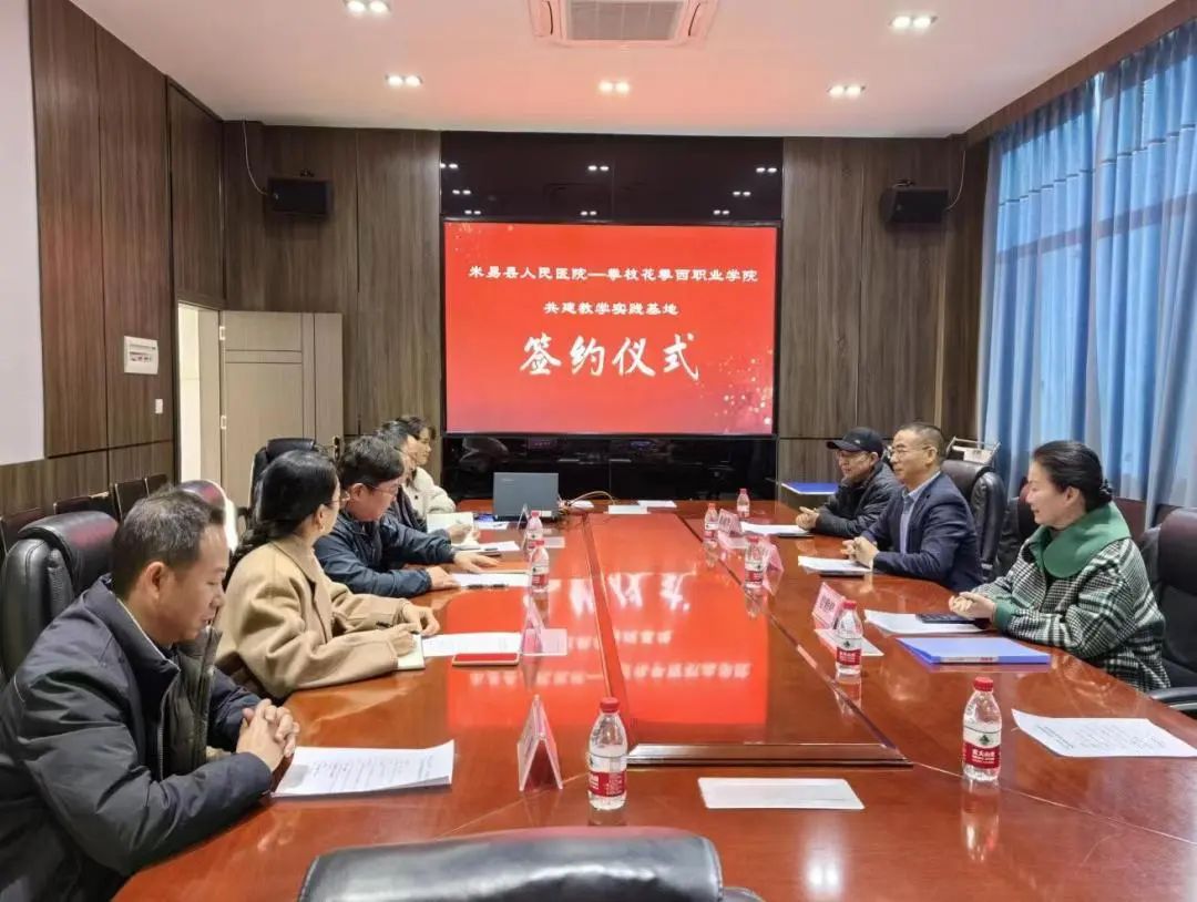 1月8日,我校與米易縣人民醫院共建教學實踐基地洽談會暨簽約授牌儀式在米易縣人民醫院五樓會議室舉行。我校執行院長趙海林、現代農業系主任曾成華、中醫養生保健專業負責人姜雅晴,米易縣人民醫院黨委副書記、副院長朱永高,副院長蘭宏政、醫務科科長朱君、科教科副科長張莉萍、康復醫學科主任丁勇等出席了此次活動。本次簽約儀式的成功舉行,開啟了雙方深度合作、共同發展的新篇章。