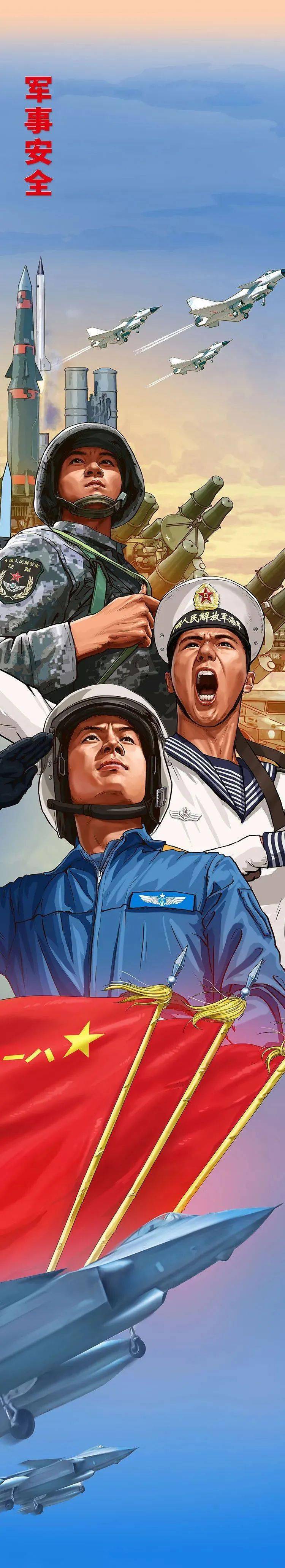 國家安全涉及的16個重點領域包括:政治安全、軍事安全、國土安全、經濟安全、文化安全、生物安全、網絡安全、社會安全、科技安全、生態安全、資源安全、核安全、海外利益安全、太空安全、深海安全、極地安全等。