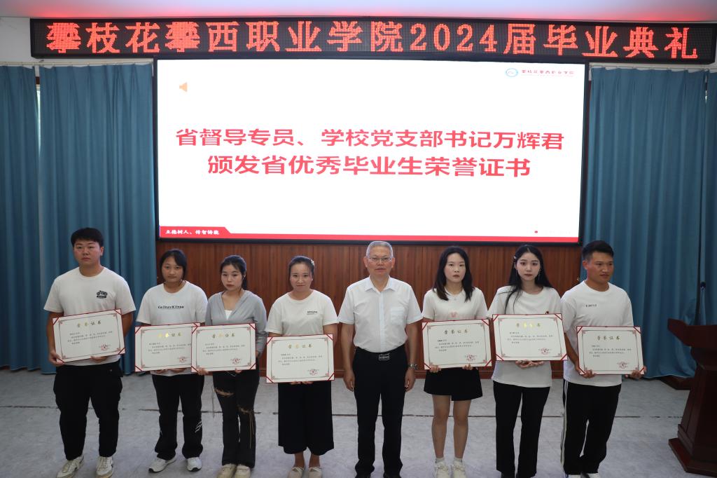 副校長(zhǎng)鄒永亮宣讀《攀枝花攀西職業(yè)學(xué)院關(guān)于表彰2024屆專(zhuān)升本同學(xué)的決定》,校長(zhǎng)潘吉平為專(zhuān)升本學(xué)生頒獎(jiǎng)。