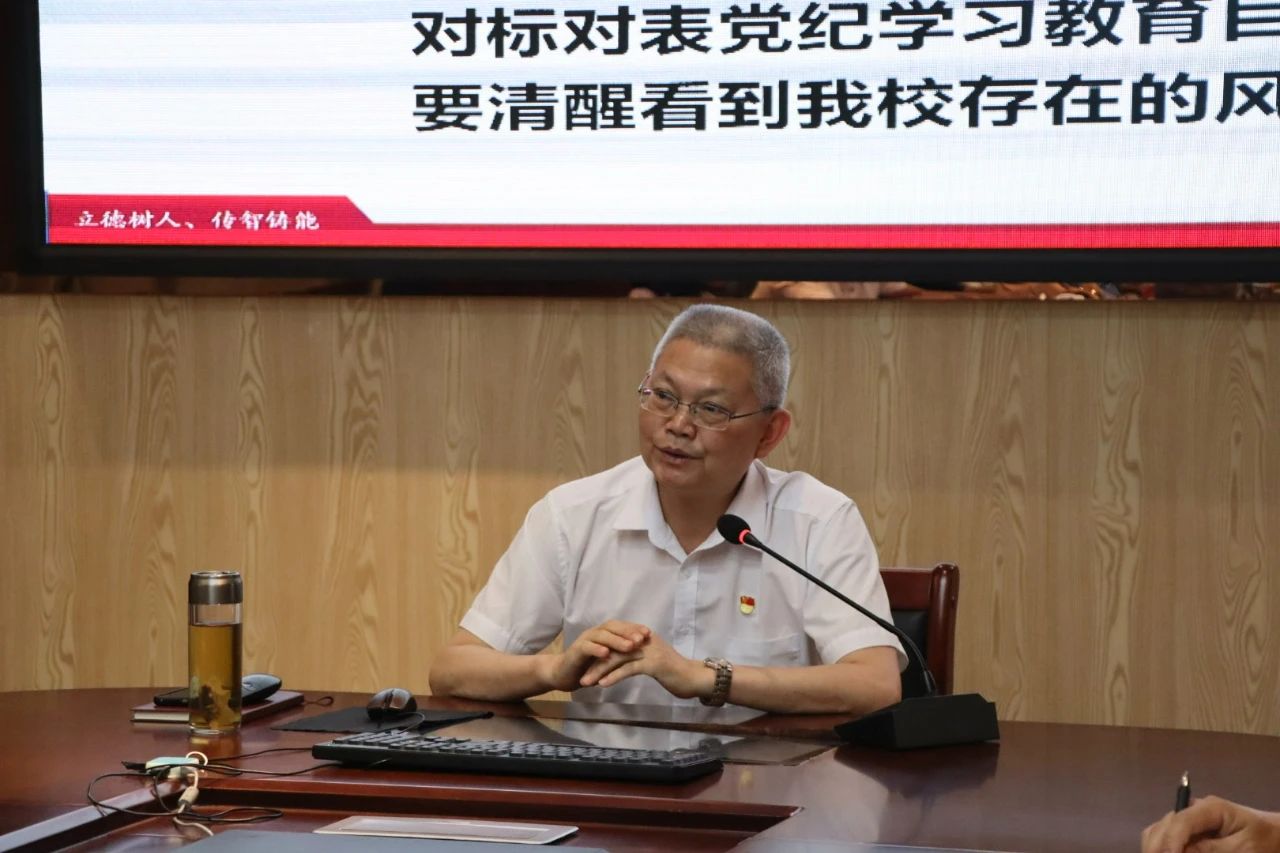 萬輝君對照《條例》中違反“六大紀律”的行為,認真查擺學校存在的風險隱患,有針對性地提出改進措施,扎實做好違規違紀風險隱患的防范和化解工作。他要求,一是做政治清醒的“明白人”,要站穩政治立場,堅定政治信仰,擔負政治責任,鑄牢忠誠之魂,心懷大局之念,把嚴守政治紀律放在首位,堅定擁護“兩個確立”、堅決做到“兩個維護”。二是做對黨忠誠的“老實人”,對黨忠誠,說老實話,做老實事,聽黨指揮,真正做到讓黨放心、讓組織信任、讓師生滿意。三是做清正廉潔的“干凈人”,嚴以修身,做到信念堅定,嚴以律己,做到廉潔自律,嚴以用權,做到端正權力觀,在思想上受警醒,在行為上存戒懼,在作風上促嚴實,始終保持自重自省自警自勵、做到慎獨慎始慎微。四是做為民服務的“貼心人”,常說“暖心話”,用耐心把實事辦得有溫度,常干“暖心事”,用誠心把實事辦得有深度,常做“暖心人”,用真心把實事辦得有力度,始終樹牢全心全意為人民服務的根本宗旨,站穩人民立場,做到根植人民、服務人民,保障師生合法權益。五是做擔當實干的“帶頭人”,爭做刻苦學習的“帶頭人”,爭做干事擔當的“帶頭人”,爭做提升本領的“帶頭人”,以時時放心不下的責任感、功成必定有我的使命感、勇于擔當作為的精氣神履好職、盡好責,切實克服躺平思想、畏難心理、本領恐慌和守舊觀念。六是做情趣高尚的“健康人”,尋找個人情趣與興趣的共同點,尋找個人情趣與事業的結合點,尋找個人情趣與能力的提升點,牢固樹立“生活作風不是小事,生活紀律不可小視”的觀念,追求健康情趣,從日常小事著手、正心明道,處處體現出共產黨員的先進性和純潔性。
