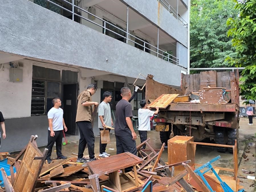 在學校李玉德副院長的帶領下,各系部各處室的干部和教職工,按照分配區域,對部分寢室、走廊、過道、院壩等進行了清掃,將學生寢室內廢棄的物品進行全面清理掃除,將寢室內的廢舊桌椅搬出進行集中處置,把過道的垃圾裝入垃圾袋,拔出院壩中的雜草......通過大家的共同努力,學生寢室區域變得干凈整潔,煥然一新,充滿了生機與活力,為即將踏入大學生活的大一新生們營造了一個溫馨而舒適的學習生活環境。