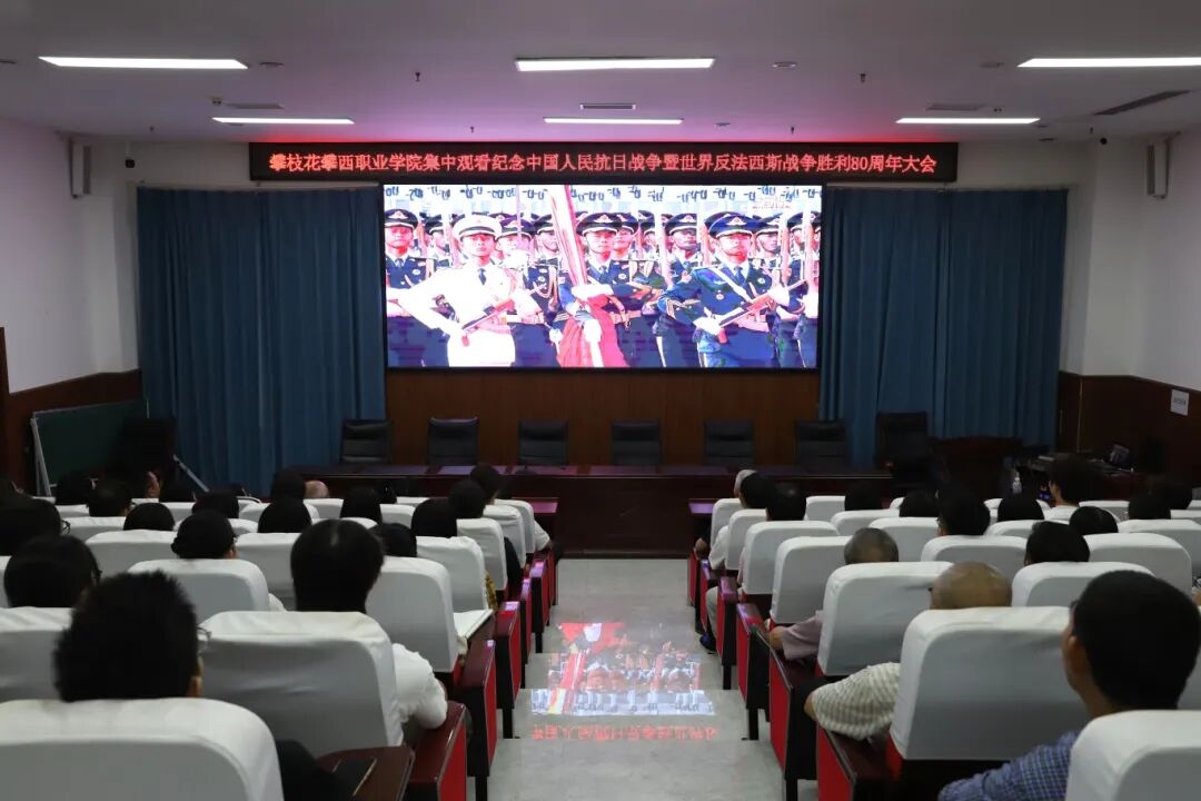 9月3日上午,攀枝花攀西職業學院組織全校教職工和已返校學生在學校二實訓樓會議室集中收看紀念中國人民抗日戰爭暨世界反法西斯戰爭勝利80周年盛大閱兵。閱兵活動結束后,學校師生十分激動,人心振奮,反響熱烈。