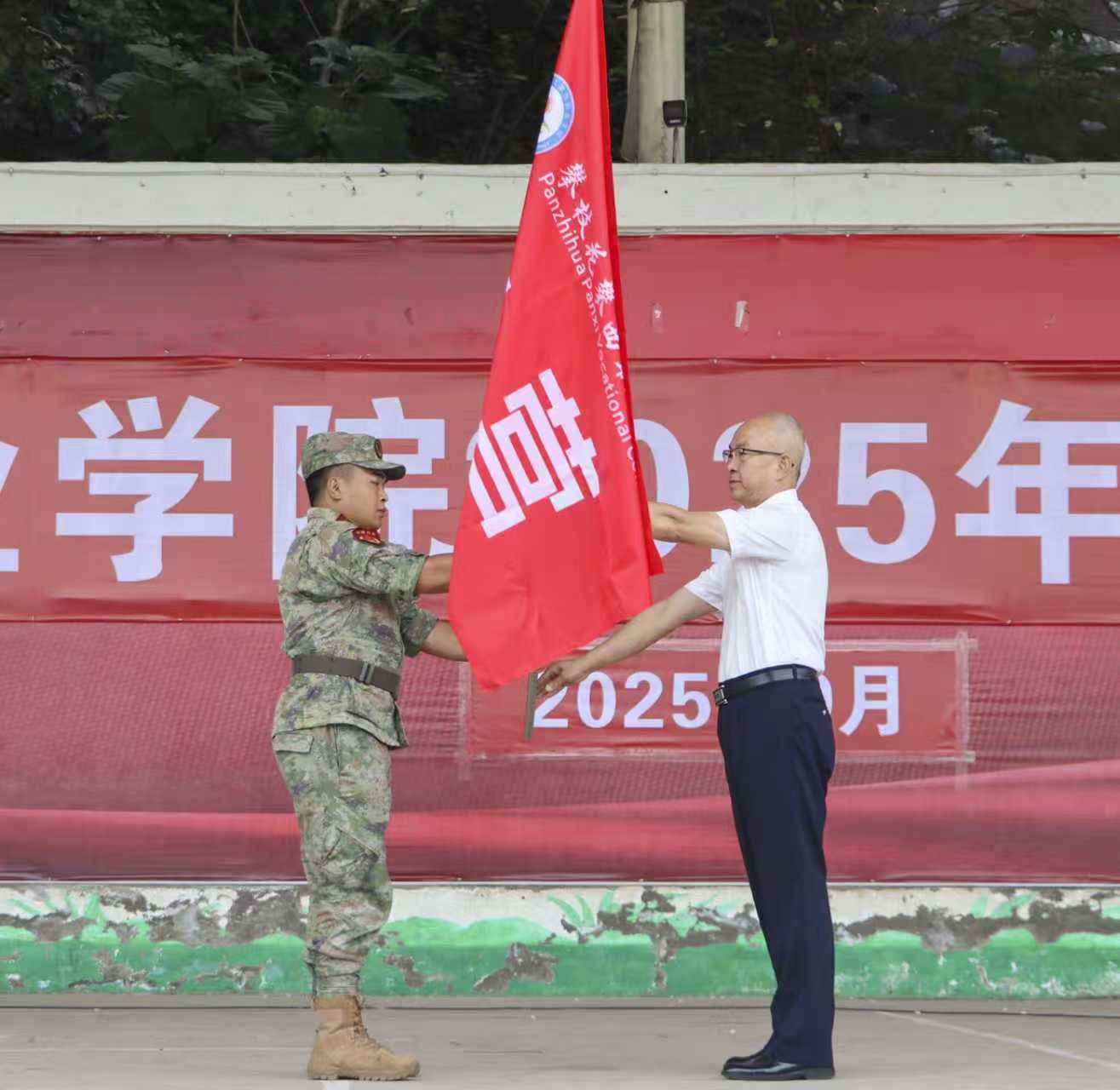 程龍泉熱情洋溢地對全體新同學表示熱烈歡迎并滿懷深情地作了開學第一講。他說,今年是中國人民抗日戰爭暨世界反法西斯戰爭勝利80周年。憶往昔,崢嶸歲月稠,先輩們熱血與堅守詮釋了“擔當”與“使命”的重量;看今朝,復興征程闊,我們更需從偉大抗戰精神中汲取前行的力量。他勉勵廣大師生一要以品德立身,以技能報國,秉承學?!傲⒌聵淙恕髦氰T能”的校訓,踐行社會主義核心價值觀。他希望新生從專業基礎、綜合素質、職業規劃和人生價值觀四個層面構建大學生涯,鼓勵大家珍惜實訓、參與競賽、拓寬視野、明確目標,并將個人成長與國家發展需要緊密結合,用三年時間繪制出各具特色、精彩紛呈的人生圖卷,在攀西職院這片沃土上書寫無愧于時代、無愧于自己的青春篇章。他希望同學們在這波瀾壯闊的時代背景之下,以青春為筆,飽蘸奮斗的墨汁,在歷史的畫布上繪就非凡的青春作為;以青春為弦,撥響夢想的音符,在歲月的樂章中奏響動人的青春風采;以青春為帆,揚起希望的風檣,在時代的浪潮中貢獻磅礴的青春力量,一同奮力書寫為中國式現代化挺膺擔當的詩意青春篇章。他向全體師生提出了在新學期的殷切期望,鼓勵全體師生在新的起點上,發揚“自強不息、砥礪奮進”的學校精神,發揚勇于拼搏、追求卓越的精神,不斷挑戰自我,努力實現新的突破。強調學校將進一步加強教育教學管理,提升教學質量,豐富校園文化活動,為學生的成長和發展創造更加良好的條件。他向2025級同學們提出三點要求:一要立鴻鵠志,涵養家國情懷;二要勤學篤行,練就過硬本領;三要挺膺擔當,爭做時代先鋒。
