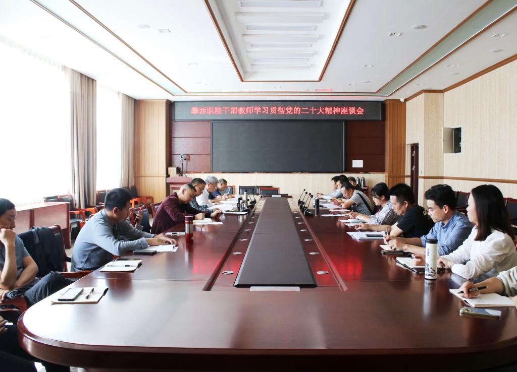 10月28日,攀枝花攀西職業學院在二實訓樓4樓會議室召開干部教師學習貫徹黨的二十大精神座談會,學習黨的二十大精神和省、市、縣委常委會(擴大)會議精神,暢談學習體會,研究部署貫徹落實措施。學校黨支部書記、省督導專員萬輝君,黨支部副書記、執行院長趙海林出席座談會并講話。學校各處室、系部負責人和教師代表參加座談會。趙海林主持學習座談會并原文領學了黨的二十大報告,就報告中的重要思想、重要觀點、重大論斷、重大部署等進行了講解。