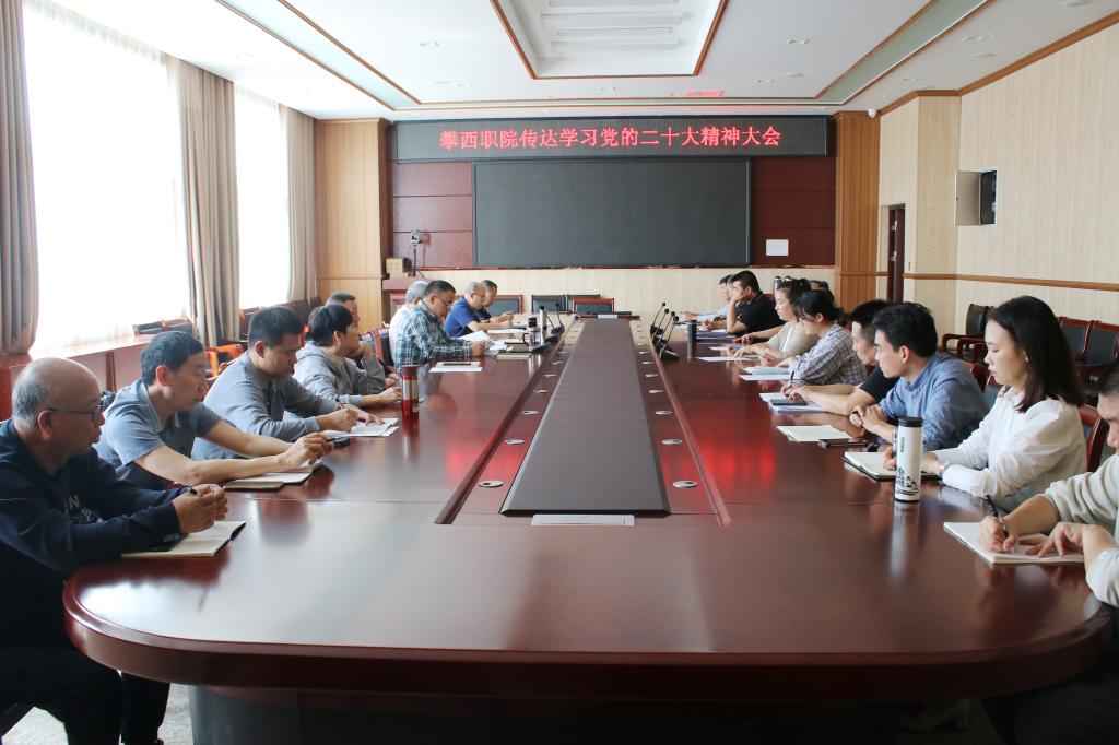 10月28日,攀枝花攀西職業學院在二實訓樓4樓會議室舉行傳達學習黨的二十大精神大會。學校黨支部書記、省督導專員萬輝君,學校黨支部副書記、執行院長趙海林出席大會并講話。學校各處室、系部負責人和教師代表參加大會。