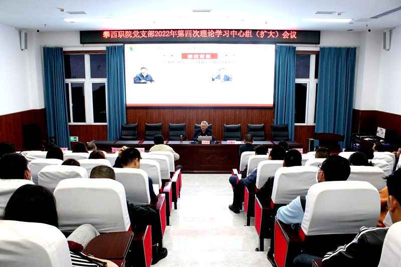 5月17日晚上7點半,攀枝花攀西職業學院在二實訓樓階梯教室召開2022年第4次理論學習中心組(擴大)學習會。集中學習習近平總書記在中國人民大學考察時的重要講話精神、在慶祝中國共產主義青年團成立100周年大會上的重要講話精神以及中共中央政治局常務委員會5月5日會議精神和新修訂的《中華人民共和國職業教育法》。學院理事長張家華,學院黨支部書記、省教育督導專員萬輝君教授,學院黨支部副書記、執行院長趙海林,副院長李玉德、周再玉出席學習會。攀西職業學院、華森職業學校、綜合高級中學、魯班培訓學校全體教職員工以及華森公司全體中層領導干部及機關全體員工參加學習會。學院黨支部副書記、執行院長趙海林主持會議并講話。