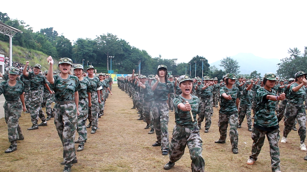 升旗完畢,軍訓匯報表演開始。在教官的引領下,同學們分別展示了女子匕首操、男子軍體拳,以此匯報他們的軍訓成果。他們的口號如雷貫耳,他們的動作整齊利落,展現出我校青年朝氣蓬勃的風采。