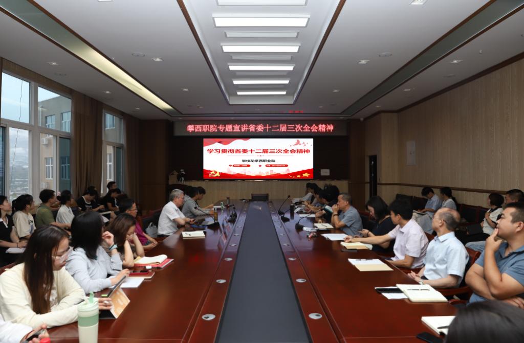 8月27日,攀枝花攀西職業學院學院書記、省督導專員萬輝君教授在二實訓樓四樓會議室主持召開專題學習會,并作省委十二屆三次全會精神專題宣講。學院副書記、執行院長趙海林,學院副院長李玉德、潘吉平出席會議,學院全體教職工參加學習會。