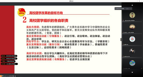 全國學聯秘書處柏貞堯同志從高校團學改革的目標方向,高校團學改革的階段性成效以及下一步深化改革的主要考慮這三方面系統的講解了高校團學工作。