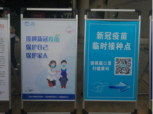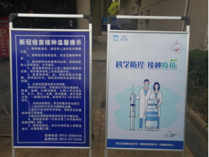 溫馨提示和接種流程等指示牌,貼心為接種學生服好務。
