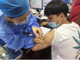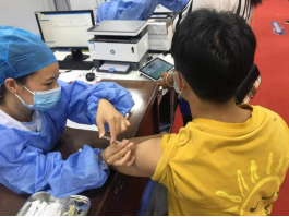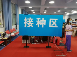 留觀區,學生接種后在留觀區休息30分鐘以便及時發現接種反應。