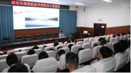 學(xué)生工作處處長助理劉興科從大學(xué)生思想政治教育和管理的特點入手,結(jié)合大學(xué)生的實際,從學(xué)習(xí)、管理、全面鍛煉、學(xué)生獎助學(xué)金及組織發(fā)展等方面為新生講述了大學(xué)生的成長成才教育。講話中把學(xué)生在校具體的注意事項、在大學(xué)階段應(yīng)注意的細(xì)節(jié)問題為新生做了詳細(xì)解答。