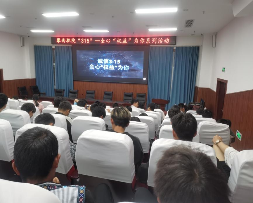 消費(fèi)者權(quán)益保護(hù)日“315”成立40年之際,為深入宣傳《消費(fèi)者權(quán)益保護(hù)法》等法律條文及維權(quán)知識(shí),學(xué)生工作處主辦的“315”消費(fèi)者權(quán)益日系列活動(dòng)于3月15日19:00在實(shí)訓(xùn)樓二樓階梯教室開(kāi)展。