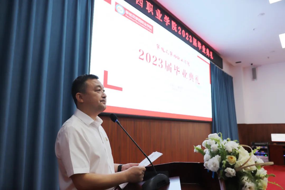 學院副書記、執行院長趙海林宣讀《四川省教育廳關于公布2023屆四川省優秀大學畢業生認定結果的通知》和我院2023屆省優秀畢業生名單。學院理事長張家華為省優秀畢業生頒獎。