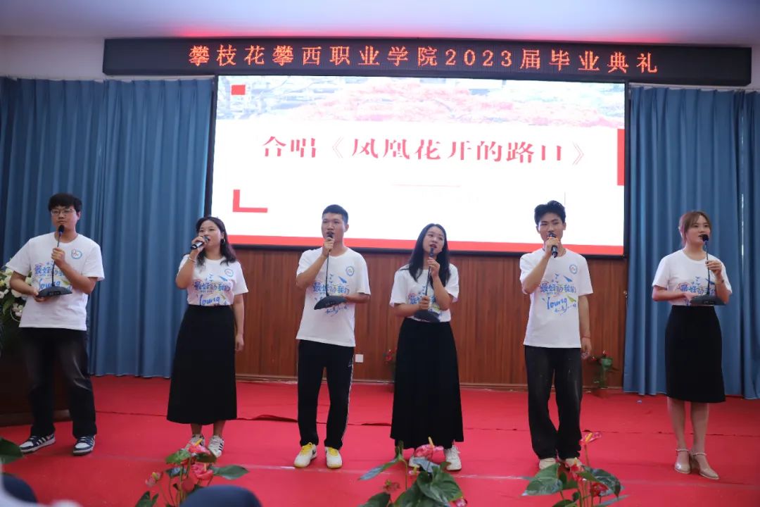 2021級、2022級同學表演配樂詩朗誦《揚帆》。“以知識為船,以夢想為帆,攀西職院授予我們的一切永遠如火紅的鳳凰花一般艷麗,“立德樹人 傳智鑄能”的校訓,已經深深地烙刻在我們的行動中、靈魂里”學弟學妹們聲情并茂地朗誦表達了對學長學姐們的不舍,同時也表達了他們的美好祝愿
