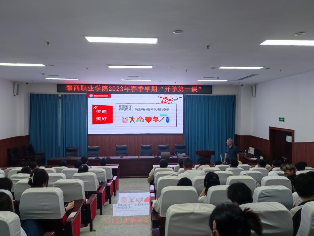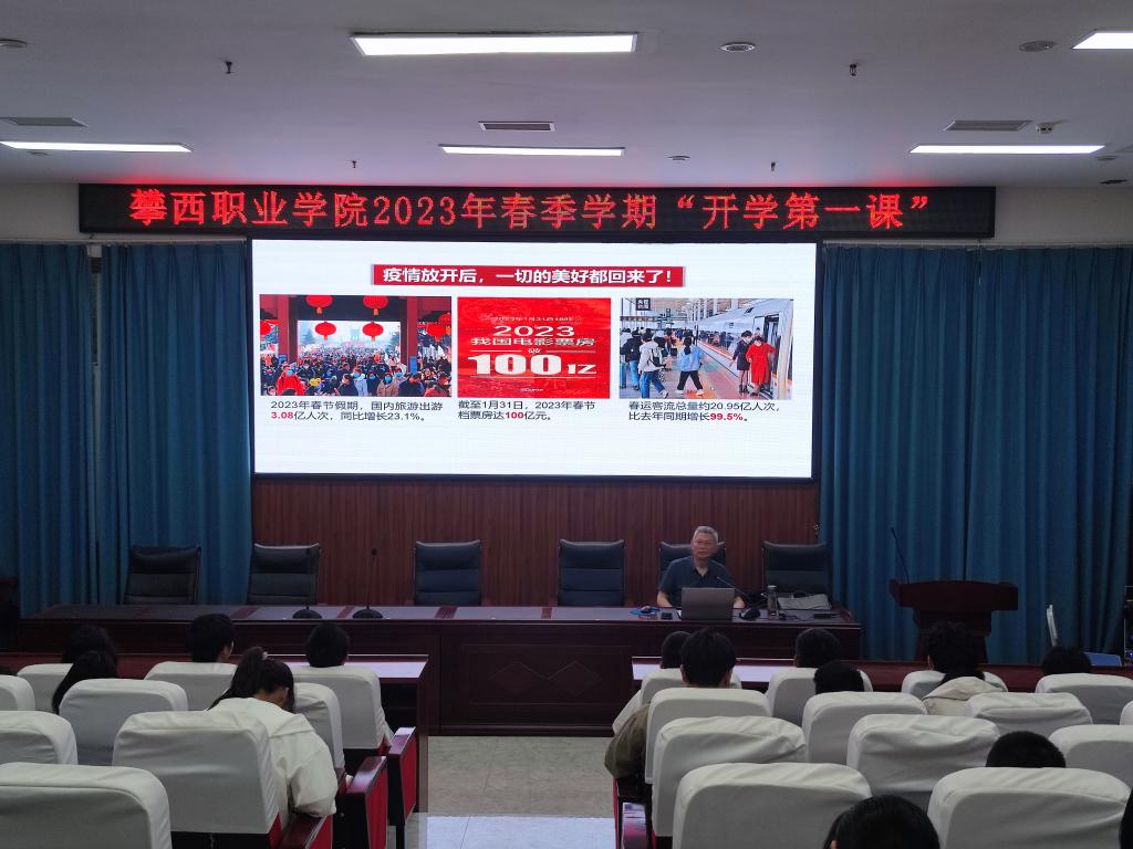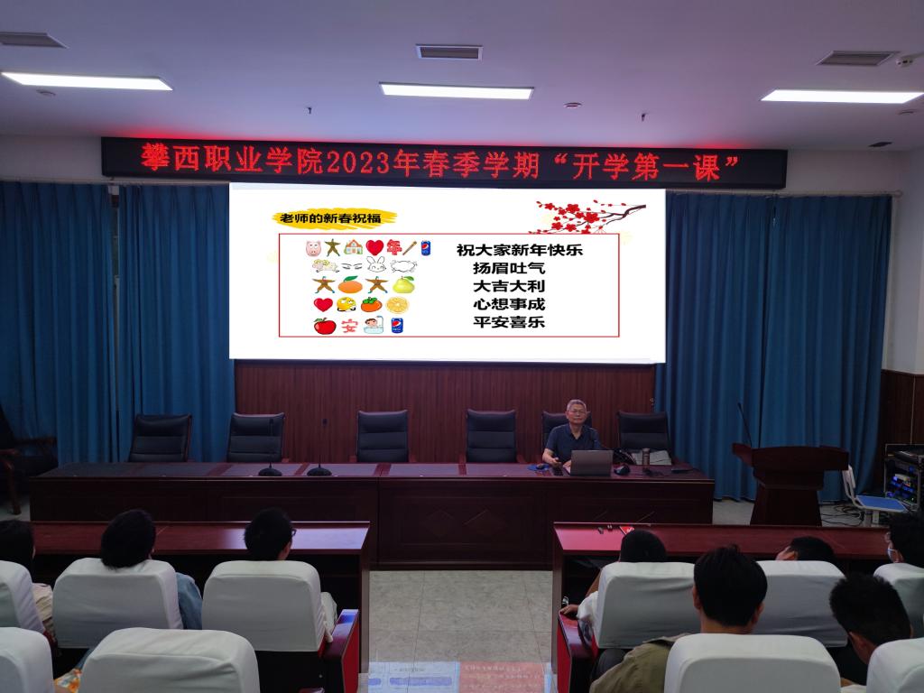 新學期、新氣象。攀西職院2023年春季學期以“向往美好 勇毅前行”為主題的“開學第一課”于3月28日在實訓樓二樓階梯教室開展,攀西職院全體學生參會,省督導專員、學院書記萬輝君主講。