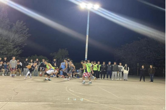 “進(jìn)了!”“好球!”觀眾們歡呼雀躍,掌聲和助威聲相互交融,在冰冷的冬夜掀起陣陣熱浪。