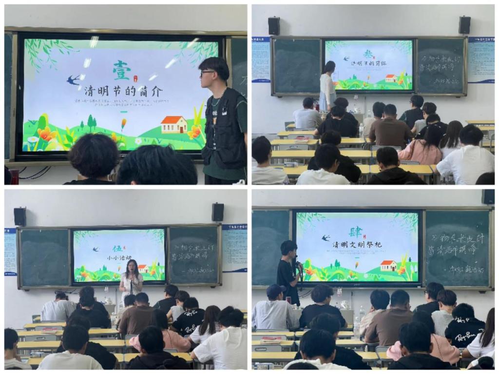 為弘揚中華民族優秀傳統文化、傳承愛國主義精神、推進我校精神文明建設。進一步弘揚英烈精神,傳承紅色基因,增強祖國的凝聚力和戰斗力。在清明期間我校組織開展了以下活動:清明公祭革命烈士掃墓、緬懷英烈追夢前行主題演講、緬懷先烈銘記歷史演講比賽及包青團、萬物生長此時皆清潔而明凈的清明節主題課堂等豐富多彩的活動。以下為我校清明活動圖: