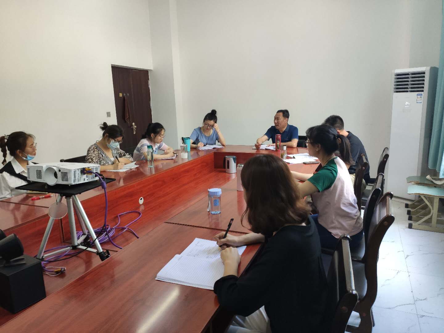 在本次會議中,伍主任強(qiáng)調(diào)了以下內(nèi)容:第一,經(jīng)過實(shí)際討論與調(diào)研,匯總了2020年春季學(xué)期擬寫可行性較大的五個(gè)科研課題名稱;第二,對全體教師的三年規(guī)劃、心得體會、教案撰寫進(jìn)行了評價(jià),并提出了相應(yīng)的要求和改進(jìn)意見;第三,強(qiáng)調(diào)將“學(xué)科育人”貫徹到教學(xué)的各個(gè)方面,即“全員全學(xué)科全方位全過程育人”;第四,對組織網(wǎng)絡(luò)授課提出了相關(guān)建議,要求教師授課強(qiáng)調(diào)紀(jì)律的重要性。最后付君副主任進(jìn)行了補(bǔ)充,強(qiáng)調(diào)反復(fù)試講對教師的成長作用,同時(shí)要求全體教師制定相應(yīng)學(xué)習(xí)計(jì)劃,研究學(xué)科發(fā)展渠道,努力將自己打造成“雙師型”教師。