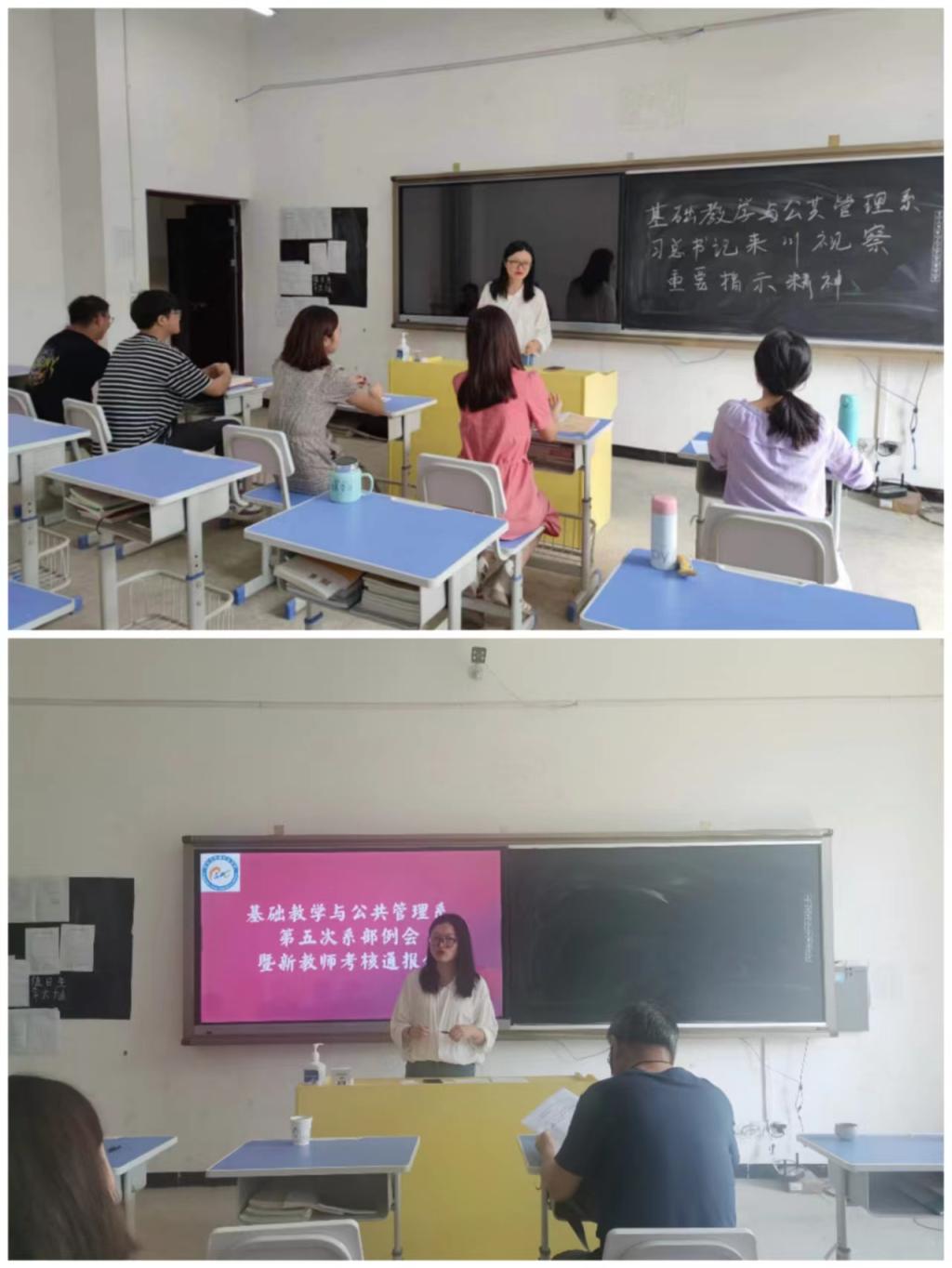 基礎教學與公共管理系于2022年6月17日15時,在二實訓樓召開第五次系部例會暨新教師考核通報會,教務處鄒吉輝處長、組織人事處馬小林副處長及本系全體教師參加,付君副主任主持會議。