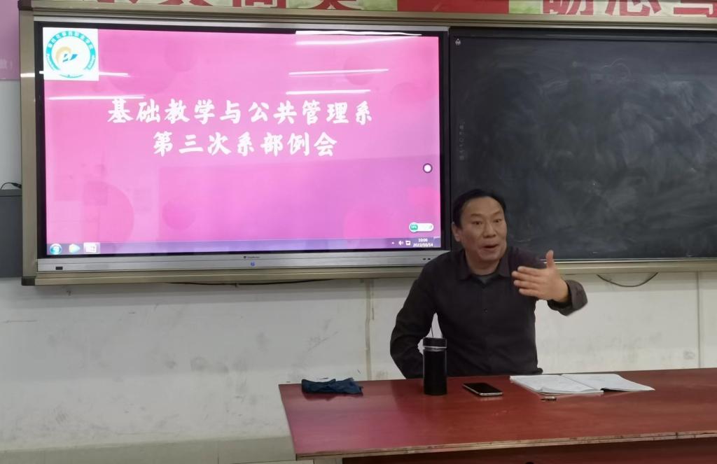為了加強系部管理,建立系部管理架構,基礎教學與公共管理系于2022年10月14日10時,在教學樓210召開系部例會。本次例會基礎系全體教師參加,系主任伍亞林主持。