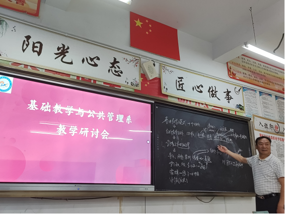 2023年3月30日,基礎(chǔ)教學(xué)與公共管理系主任伍亞林在教學(xué)樓210就如何上好一堂課進(jìn)行示范講解。基礎(chǔ)系全體教師參加,主任伍亞林主講。