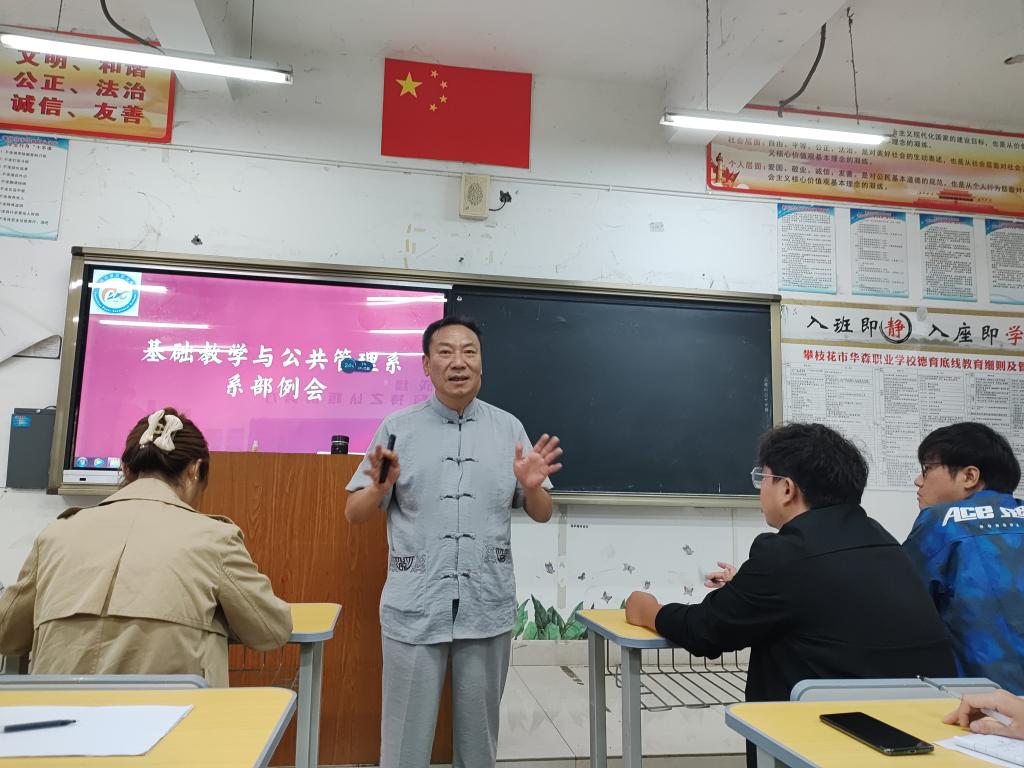 為了讓新教師迅速進入角色,適應崗位要求。基礎教學與公共管理系于2023年10月12日,在教學樓212召開系部例會。本次例會基礎系全體教師參加,系主任伍亞林主持。