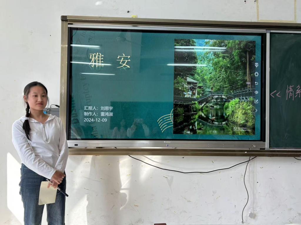 活動開始,由阿西阿敏小組的《情系家鄉(xiāng)共話美好》的主題活動拉開帷幕。來自不同地區(qū)的同學,介紹家鄉(xiāng)的特色。藏族同學介紹甘孜州爐霍縣城的美麗風景。還有同學介紹被譽為“漢代文物之鄉(xiāng)”雅安。