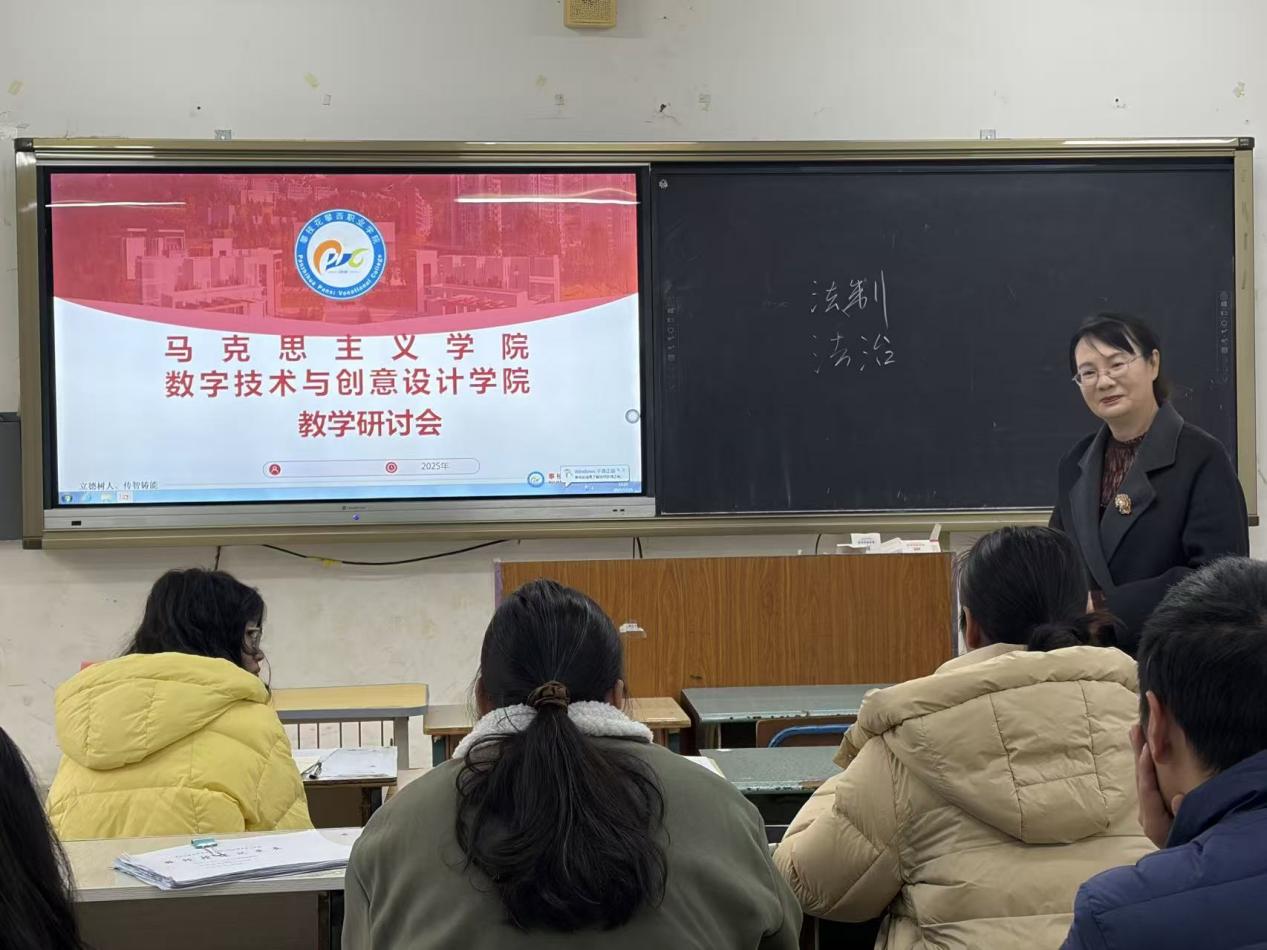 12月25日,數字技術與創意設計學院吉克石西老師以“加快建設法治中國”為主題,講授《習近平新時代中國特色社會主義思想概論》公開課。學院主任荊永月全程聽課,并在課后結合課程內容與教學實踐作出專業點評,為全院教師深化理論教學、提升授課質量提供明確指引。