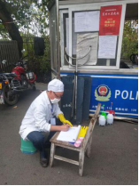 四、食堂工作人員每天進(jìn)行三次體溫測試,食堂周邊每天三次消殺,內(nèi)部就餐人員自帶餐具,排隊(duì)購餐,距離保持1.5米以上,不提供桌餐,禁止一切公共聚餐活動;