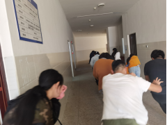 (三)由倪繼成宣布防火疏散演習開始,假設發生火災,并以急促的警報聲為信號;聽到信號,各系輔導員、班主任、上課老師應迅速組織學生在原地迅速蹲下,用濕毛巾捂著口鼻;待12秒發出第二次信號后由各系輔導員、班主任、上課老師組織學生(低姿、濕毛巾捂著口鼻)迅速按規定線路撤離到教學樓一樓壩子及南面運動場(避險場地)蹲下(用濕毛巾捂著口鼻),當聽到險情解除信號后按平時集合隊形到教學樓一樓壩子集合,由各系輔導員、班班長整隊,迅速清點人數,向院長報告,應到人數和實到人數。