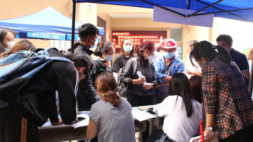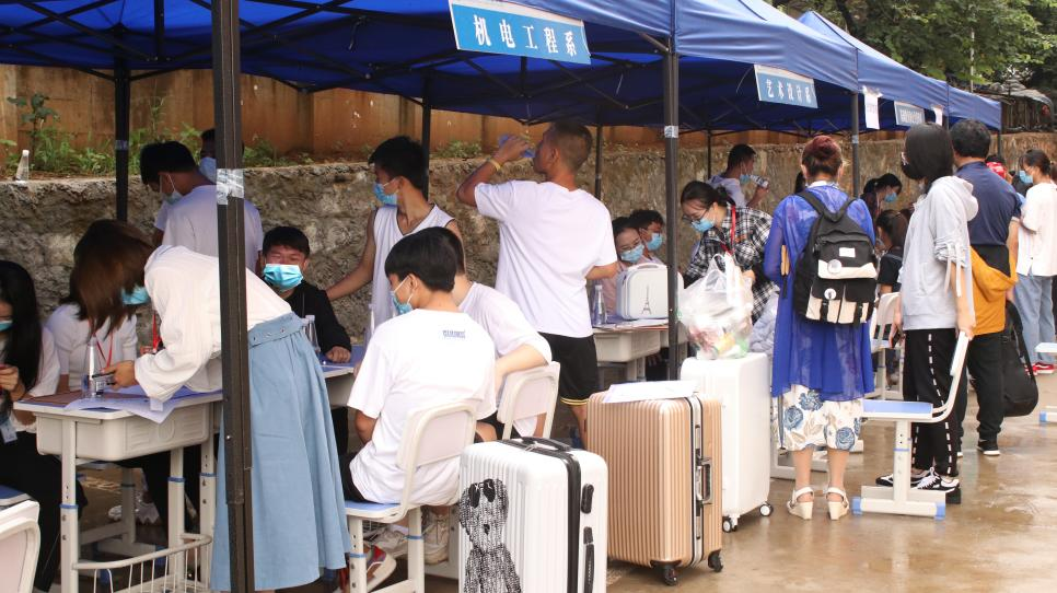 迎新工作如火如荼,到處都是忙碌的身影。大二的學長學姐與各系部的教師不厭其煩地給新生、家長回答著他們提出的各種問題。各系部教師和學生去到火車站和汽車站接才到的新生,在新生報名完成后主動幫著拎行李,一路談笑風生。新生細聲地叫著“學長學姐”,老生們也開心的為新生介紹了食堂和宿舍。