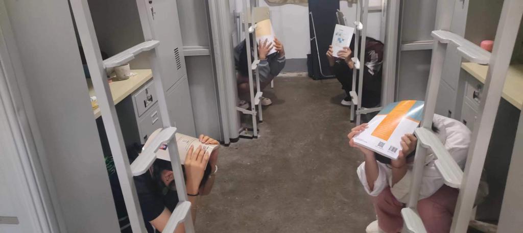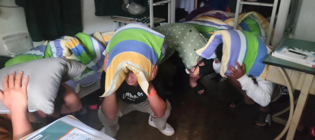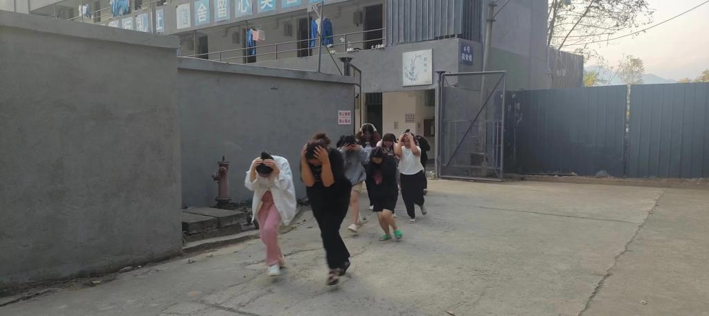 演練過程中,師生按照預案的要求,迅速而有序地進行地震避險及應急疏散。下午1點50分,隨著第一聲報警聲響起,宿舍全體學生進入緊急避險狀態。在宿舍長的指揮下,學生雙手護頭,盡量蜷曲身體,降低身體重心,就近避險。待第二聲疏散警報信號響起,學生根據指引員引導,按照預定路線有序撤離宿舍。大家保持冷靜、迅速行動,成功地在預定時間內到達了安全區域。演練結束后,后勤保衛處副處長倪繼成總結演練的經驗,指出需要改進的地方,并強調應急疏散的重要性。