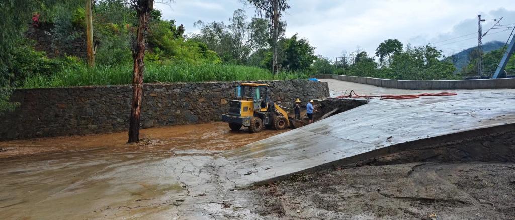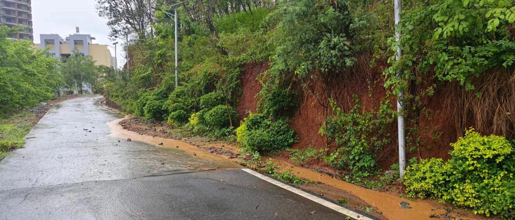 學校二實訓樓下泥沙堵塞,造成壩子被水淹。后勤保衛處相關人員進行緊急搶險,鏟淤泥、掃碎石、清理樹枝,迅速打通排水通道。C4樓旁天橋公路排洪溝渠堵塞,相關區域責任單位藝術設計系立即組織人員對其進行緊急疏通。