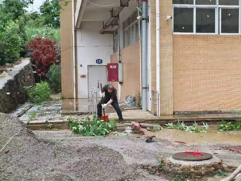 受6月18日凌晨雷暴雨影響,學校多個地方出現了淤泥堵塞排洪溝、淤泥沖到路面、房屋漏雨等問題。伴隨一聲號召,學校教職工應急行動就此展開。