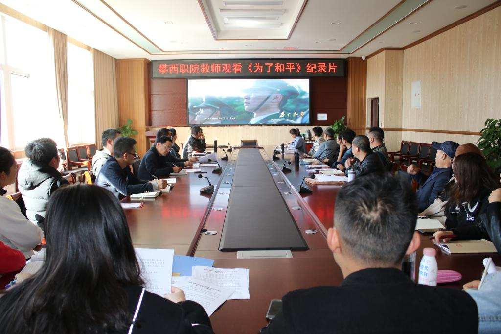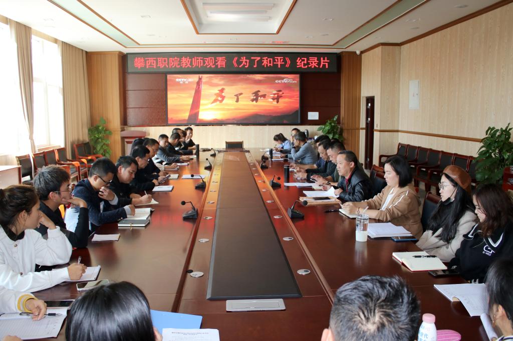 為深入貫徹落實(shí)習(xí)近平總書(shū)記在紀(jì)念中國(guó)人民志愿軍抗美援朝出國(guó)作戰(zhàn)70周年大會(huì)上的重要講話精神,深入開(kāi)展“四史”學(xué)習(xí)教育,大力弘揚(yáng)偉大的抗美援朝精神,加強(qiáng)新時(shí)代愛(ài)國(guó)主義教育,教育引導(dǎo)廣大教職工厚植愛(ài)國(guó)主義情懷,11月25日下午學(xué)院組織全體教師在二實(shí)訓(xùn)樓四樓會(huì)議室共同觀看了大型電視紀(jì)錄片《為了和平》。
