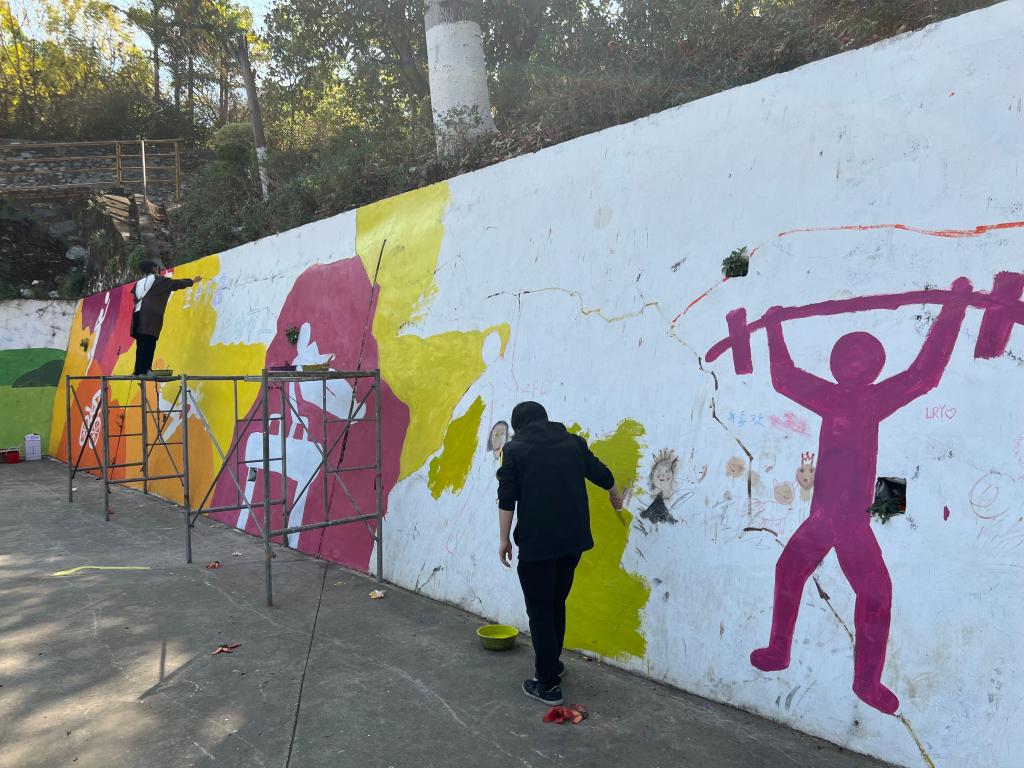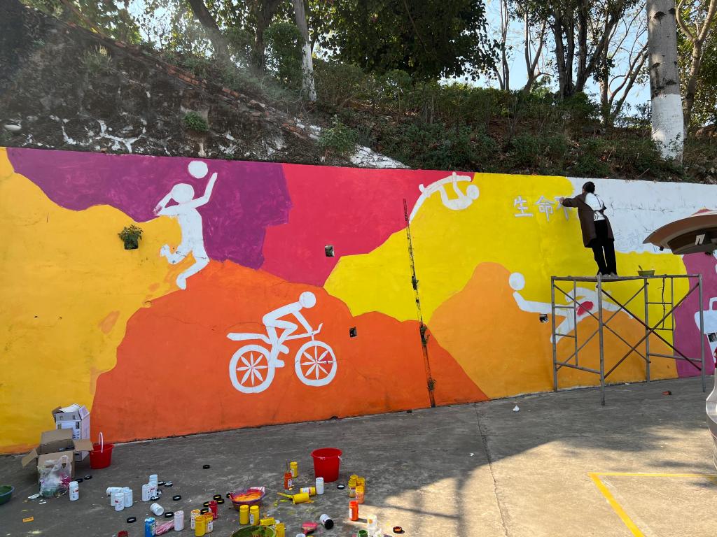為了進一步豐富校園文化生活,營造濃厚的校園文化氛圍,優(yōu)化育人環(huán)境。提高同學們的藝術修養(yǎng)、審美情趣,攀枝花攀西職業(yè)學院藝術設計系全體教師發(fā)揮主人翁精神,利用課余時間,放棄休息,晝夜加班加點,積極投入到主題文化墻的創(chuàng)作和繪制中,目前《生命不息,運動不止》等主題墻繪已完成一半,待完成后,將成為學院文明校園創(chuàng)建和校園文化建設的一個新亮點,也會是學院風光的一個新看點。